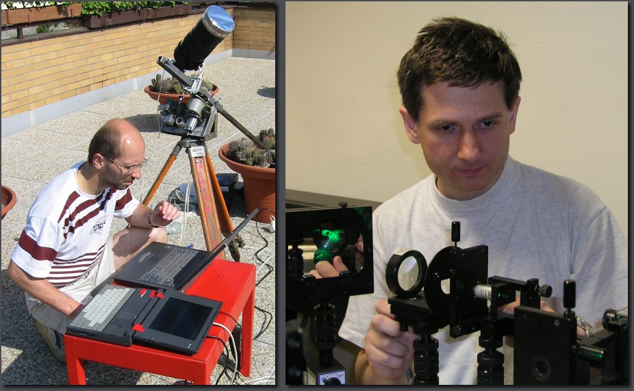 Pavel Štarha observing the Venus transit 2004 (left) and Martin Antoš (right) in an optical laboratory.