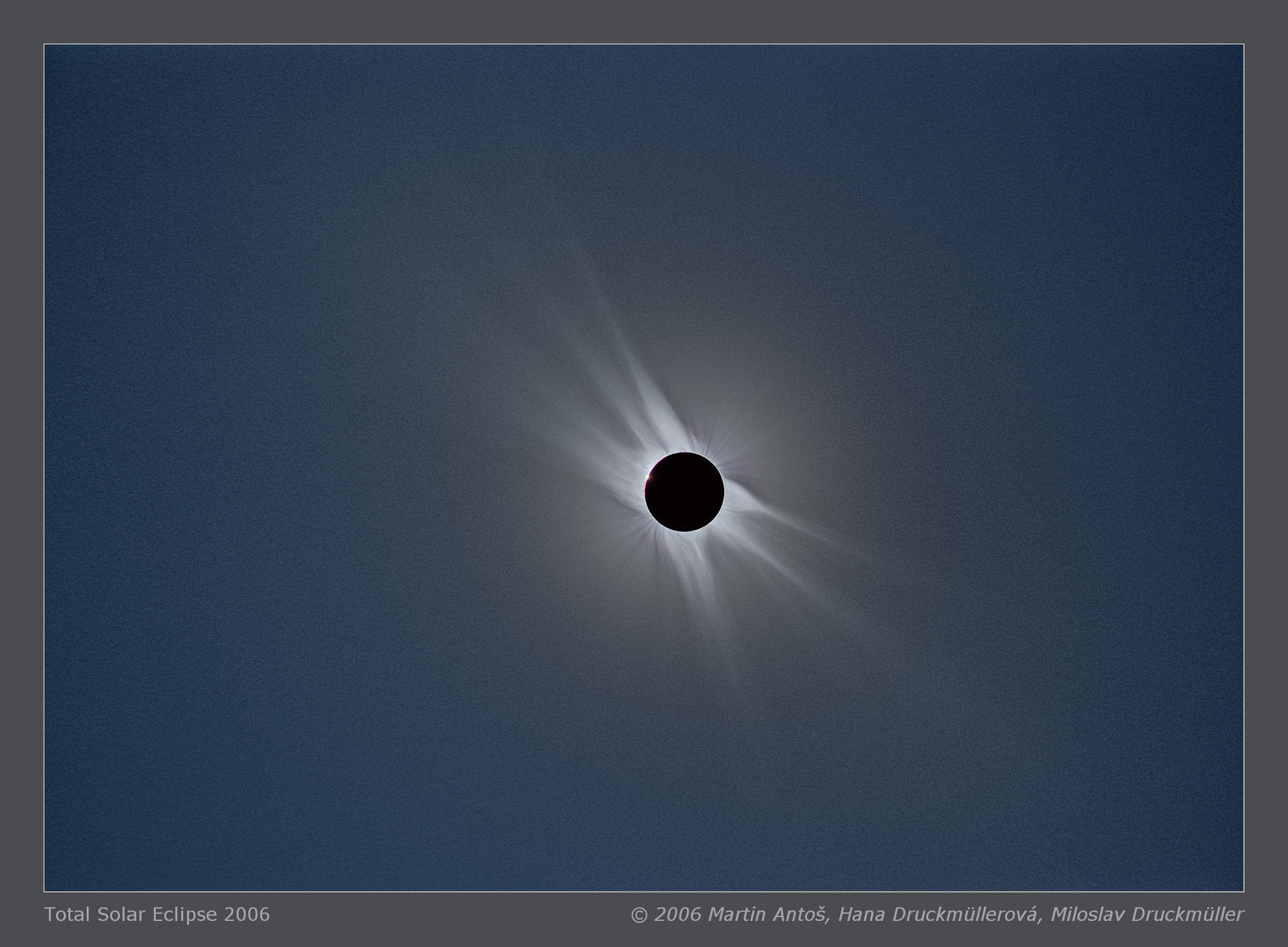 | Processing | Composition of 98 images (64 D, 35 A). Images were aligned by means of phase correlation, composed using of LDIC 4.0 software, processed using Corona 4.0 in order to visualize coronal structures. Final processing was done using ACC 6.0 software. Image processing by Miloslav Druckmüller and Hana Druckmüllerová |
