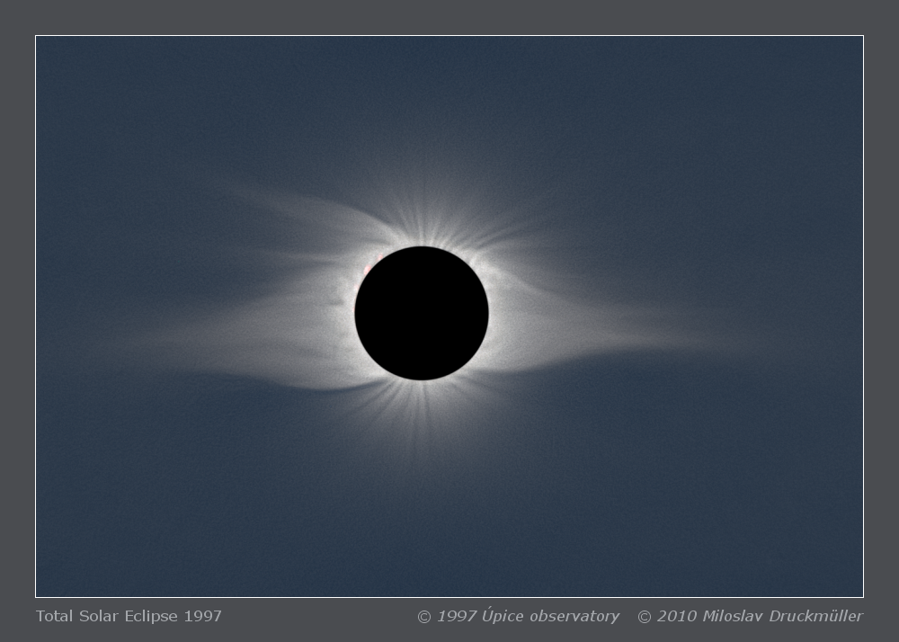 This image is made from color slides taken by Úpice observatory (Czech republic) expedition in Siberia. The observing conditions were extremely hard. The temperature of about -30°C caused a lot of technical problems especially with focusing of mirror optics.