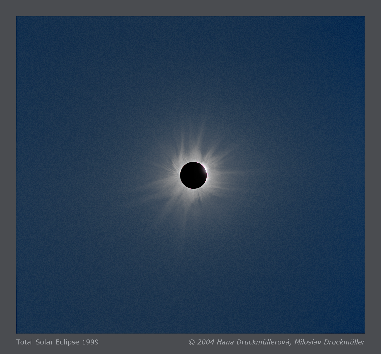 More infoComplete set of processed images and animation including many texts about Sun and solar eclipses was published on multimedia CD: Miloslav Druckmüller, Journey to Solar Eclipse, AION and WOLF RECORDS, 2000