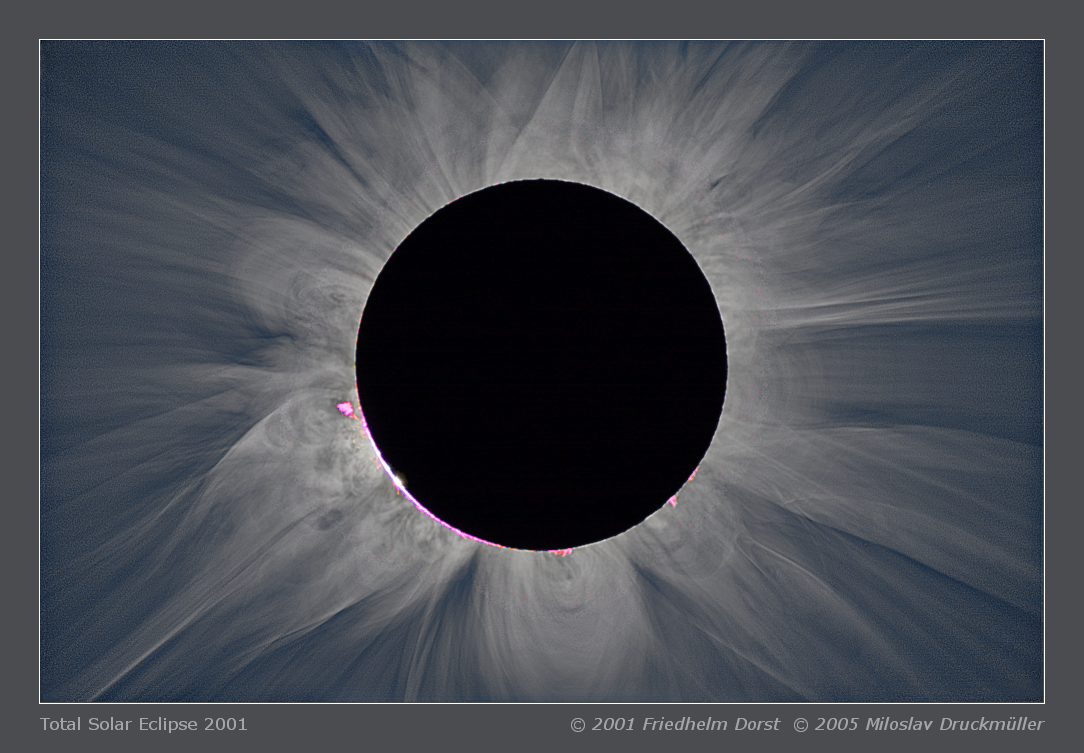 | Processing | Composition of 21 images. Images were aligned by means of phase correlation, composed by means of LDIC 1.0 software, processed using Corona 3.0 in order to visualize coronal structures. Final processing was done using ACC 6.0 software. Image processing by Miloslav Druckmüller |