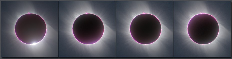 During the total phase of eclipse the cirrus cloud diffused the light and caused H-alpha red colored