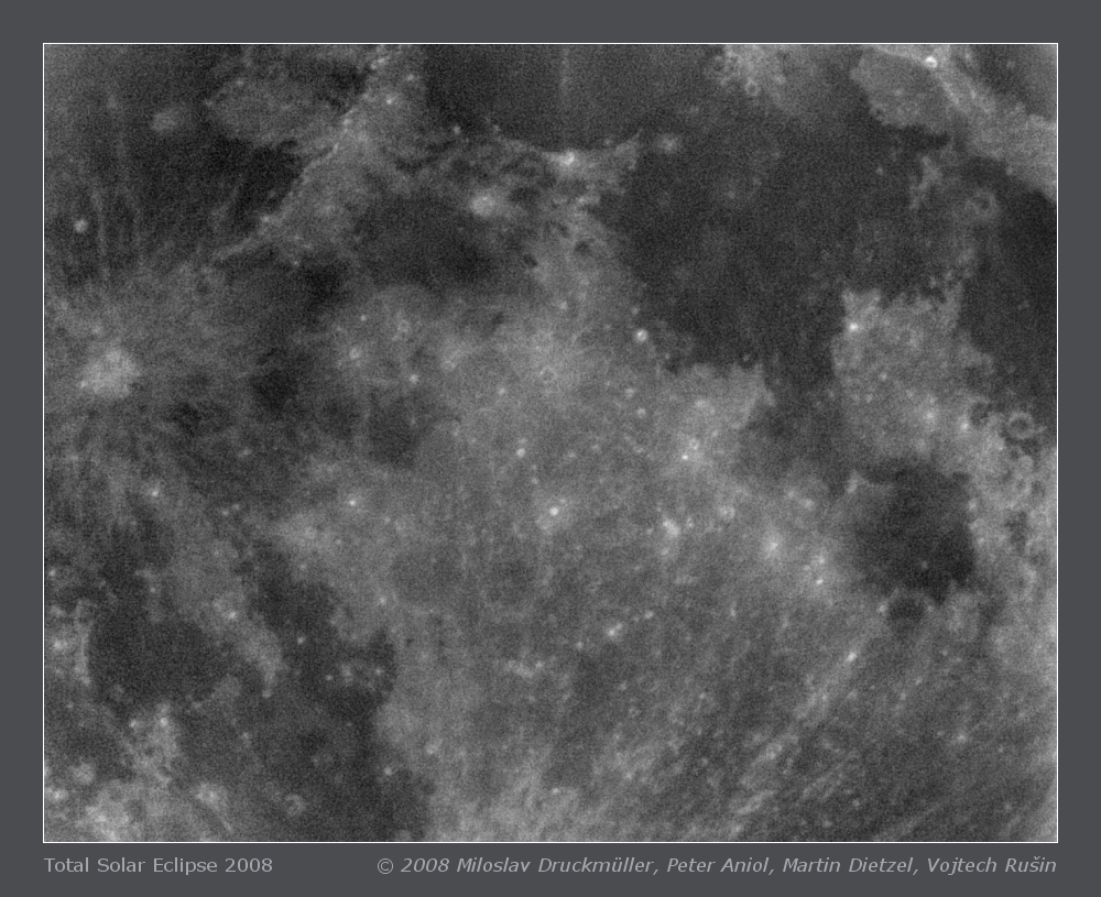 | Processing | Composition of 25 images. Eclipse images were calibrated by means of several hundreds of dark frames and flat-fields, aligned by means of phase correlation, composed by means of LDIC 5.0 software, processed using Corona 4.1 in order to visualize coronal structures. Final processing was done using ACC 6.1 software. Image processing by Miloslav Druckmüller |