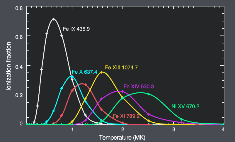 This graph shows ionization equilibrium curves for observed spectral lines.