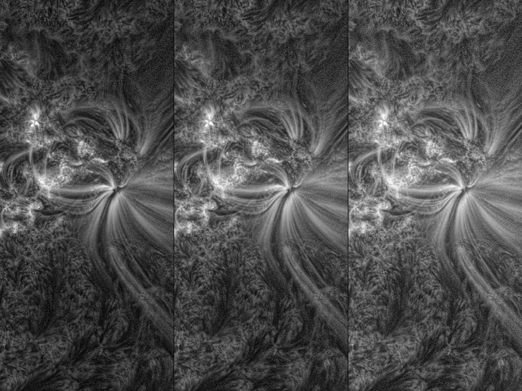 NAFE processed image with different gamma values (1.8, 2.6, 4.0 from the left do the right.)
