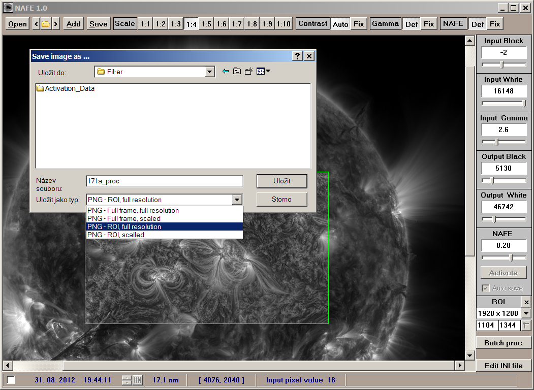 - ROI, full resolution. Only the ROI is saved in full resolution. This is default if ROI is set.