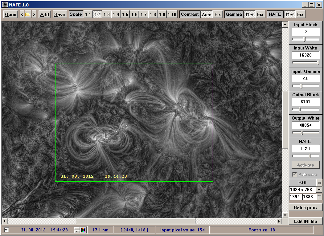 will be written to the bottom left corner of the image or ROI. The font size can be changed