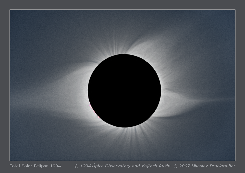| Processing | Totally 8 images (4 U,4 R) were used for creation of this image. Images were aligned by means of phase correlation technique and then processed using Corona 3.0 software by means of adaptive kernel convolution. Final processing was done in ACC 6.0. Image processing by Miloslav Druckmüller |