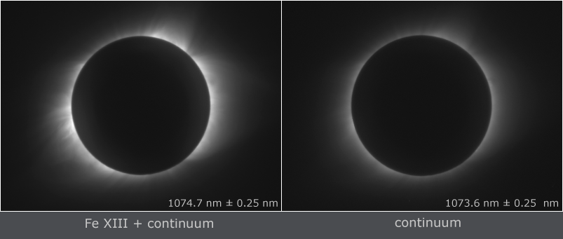 with a transmission band centered on Fe XIII 1074.7 nm emission line. The right image was