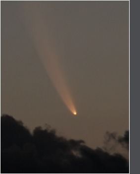 jen jádro komety a malý kousek ohonu, víc není zatím na světlé obloze vidět.