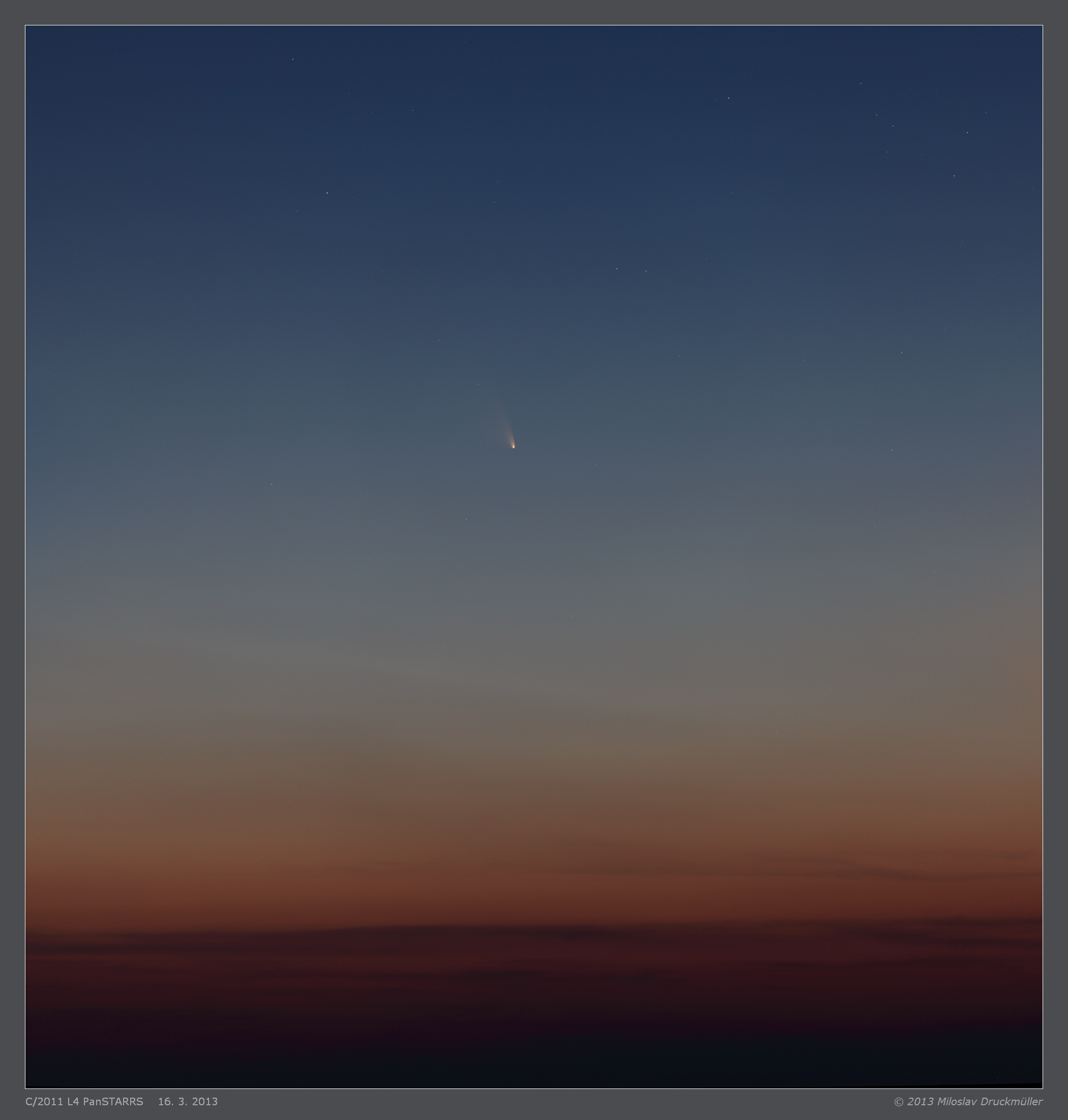 This image shows the comet about 55 minutes after sunset on the still-bright sky. Even though the comet was a