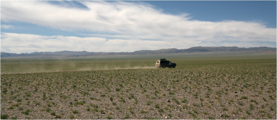 Eclipse camp in Mongolian Gobi desert, Lat. 45° 43.25' N, Long. 92° 06.84' E, Alt. 1223 m