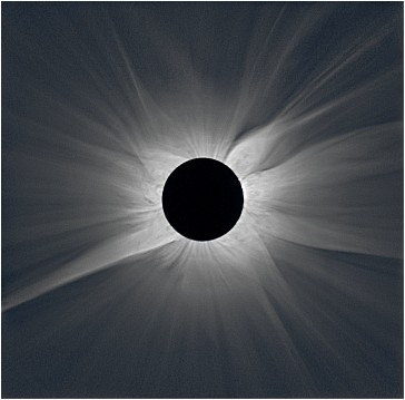 ![]() ![]() I was not very enthusiastic when I was asked by David Finlay to process his images taken aboard B 747 during the flight over Antarctica. I was skeptic about the quality of images taken though an airplane's window with (from the nowadays point of view) old generation digital camera and saved in JPEG format. The uniqueness of the image set made me to start the processing. The precise image alignment of 51 images by means of phase correlation was extremely time consuming - one image about 20 minutes of computer computing time. Another alignment problems were caused by the strange properties of image taken through thick airplane window. The worst problem was the correct composition of images in JPEG format captured with exposures in range from 1/250 s to 1/5 s. I had had no experience in processing of eclipse images in JPEG format. I created several new computer programs which turned out to dead ways. Finally, I solved the problem successfully. The result highly surprised me. The quantity of images and excellent observing conditions compensated the shortcomings and the result is highly over my expectations. The conditions in altitude over 10 km are very near to conditions in the space. So the next logical step was the compose the images taken from the airplane with SOHO images - especially with LASCO C2 and EIT. The results are fascinating because they enable to understand better the 3D coronal structure than eclipse images only.