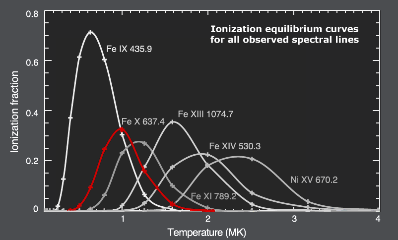 and near IR wavelength range: Fe IX (435.9 nm), Fe X (637.4 nm),