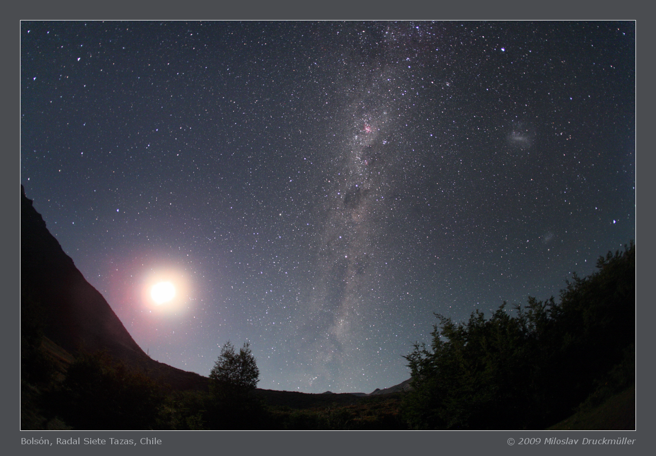 The image of the Southern sky with the Moon shortly after its rise was taken in Bolsón in Valle Indios
