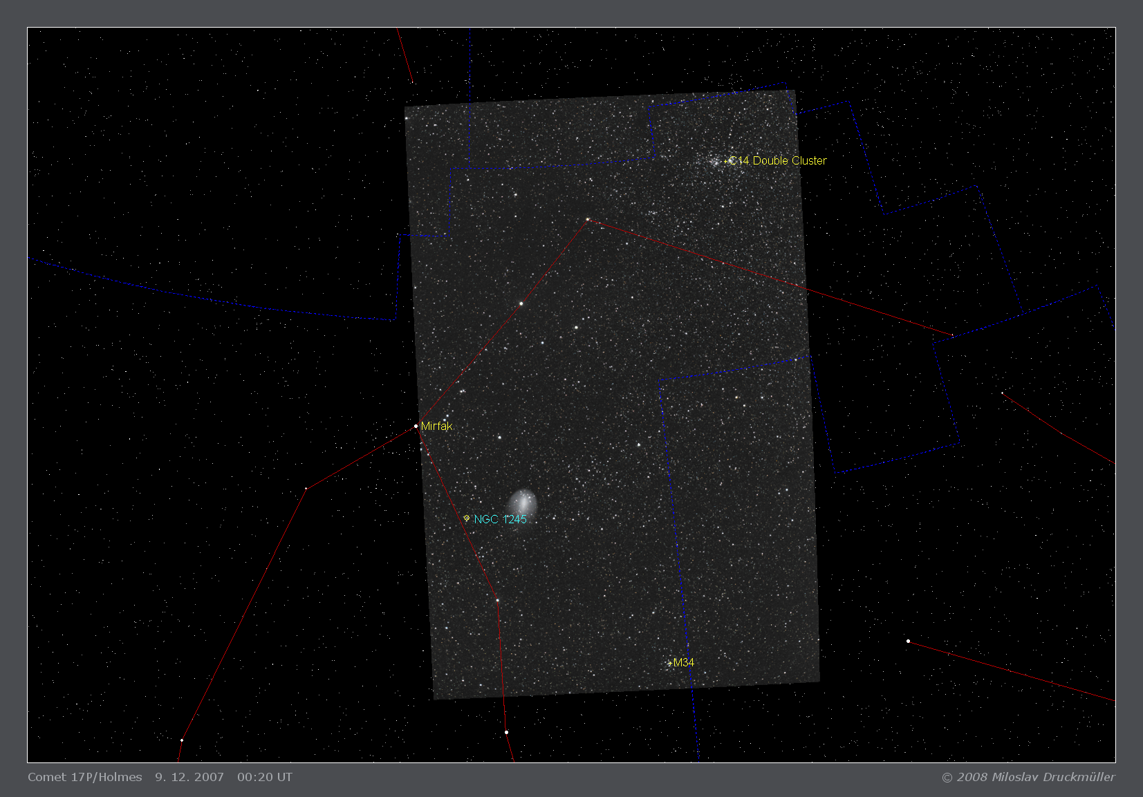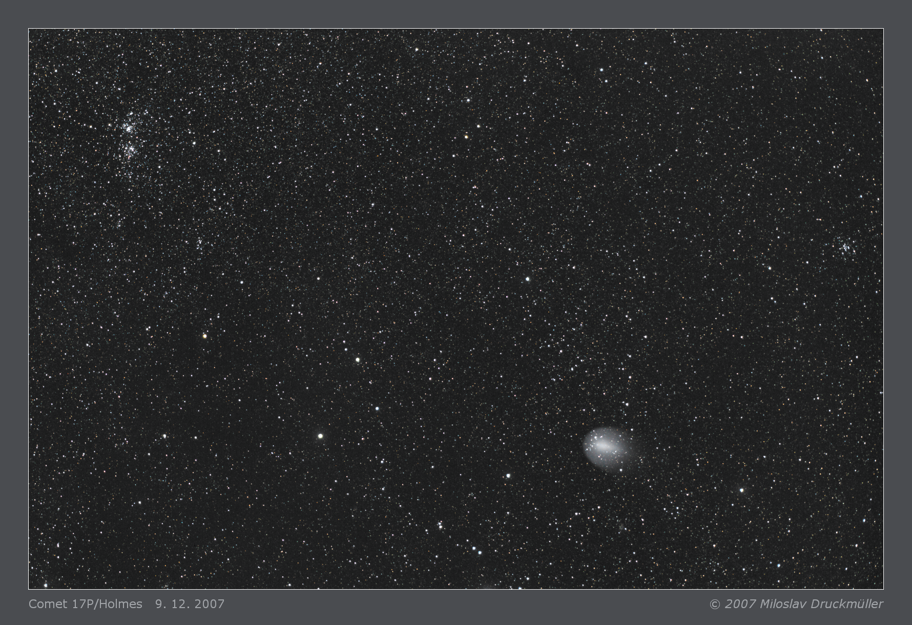 The image shows the Holmes comet and open clusters in