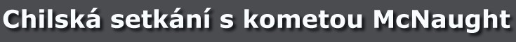 Když jsem do Chile odlétal, netušil jsem, že právě tam bude vidět nejjasnější kometa za posledních skoro padesát let. Myslím, že v té době to netušil ještě nikdo, protože předpovídat jasnost komet je velmi obtížné. I když jsem se čistě náhodou nacházel na té správné zemské polokouli, nebylo vůbec snadné najít místo, odkud bych mohl kometu dobře pozorovat a fotografovat. S mými nervy si řádně pohrávalo také počasí. Nakonec jsem kometu několikrát viděl a dovezl i řadu obrázků. Pokud se chcete podívat jen na obrázky se strohými technický informacemi (v angličtině), můžete přejít přímo sem. Pokud si chcete přečíst i mé bezprostřední dojmy sepsané ihned po návratu z Chile, pak omluvte místy až příliš detailní a sugestivní líčení. Psal jsem to v době, kdy jsem byl stále ještě plný dojmů.