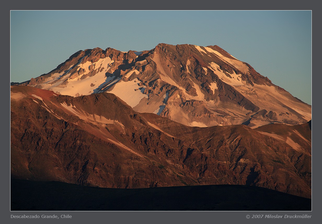 Stratovulkán Descabezado Grande: nadmořská výška 3953 m, souřadnice 35,58° S,