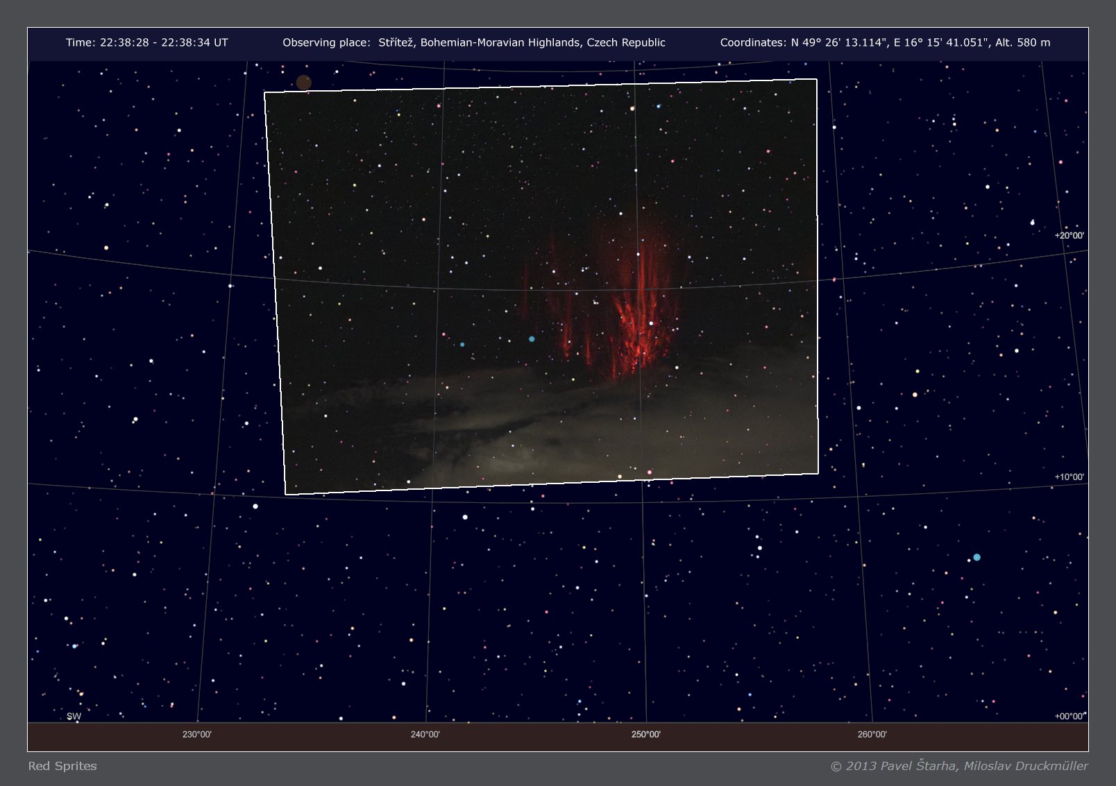 of the camera field of view. The exact position of the red sprite in the sky is shown in this