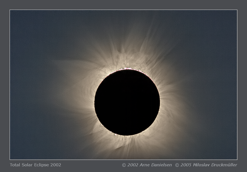 This image of 2002 total solar eclipse in Australia is unique in several aspects. The eclipse was