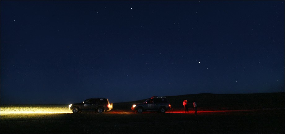 Eclipse camp in Mongolian Gobi desert, Lat. 45° 43.25' N, Long. 92° 06.84' E, Alt. 1223 m