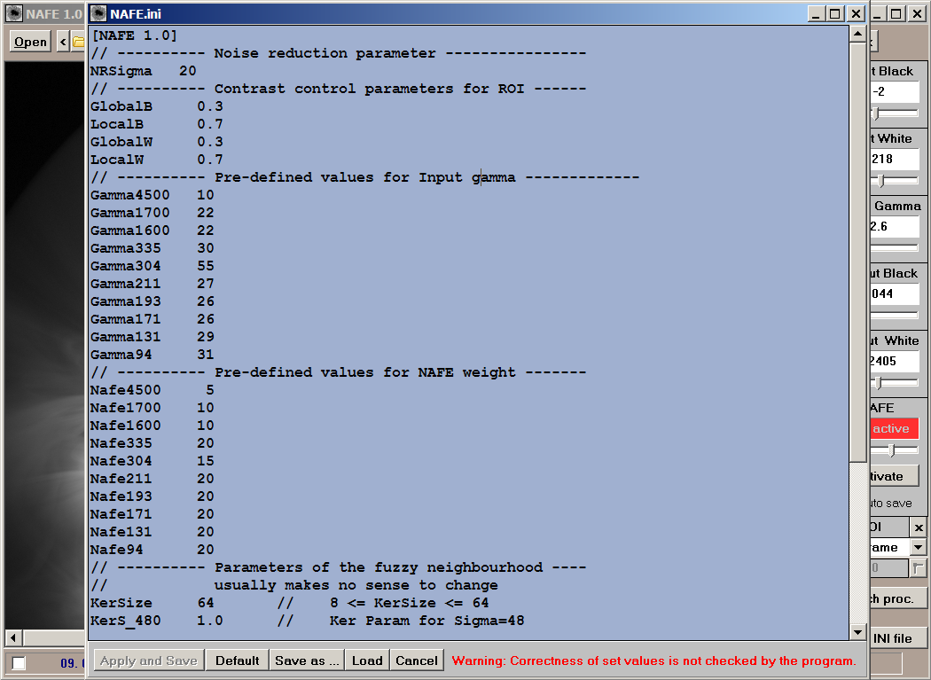 - Apply and Save - applies new parameters setting and overwrites the NAFE.ini file.